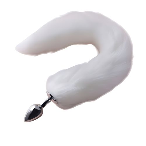 Анальная пробка металлическая с меховым белым хвостом SKN-L09