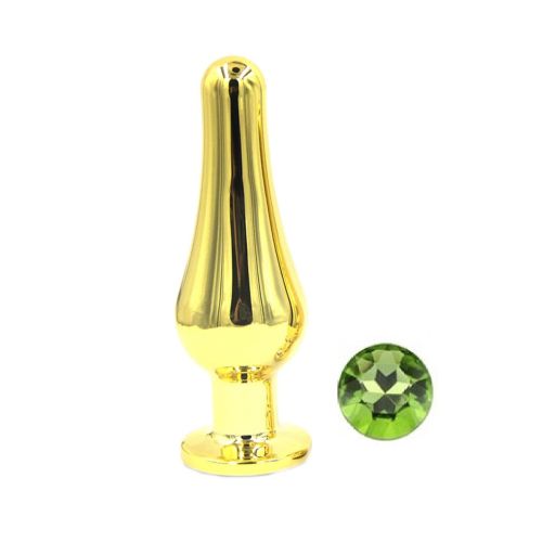 Металлическая анальная пробка золотая с салатовым кристаллом SKN-MG02