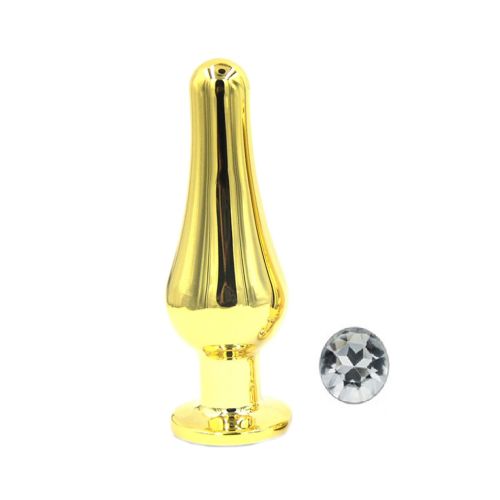 Анальная пробка золотая с бесцветным кристаллом SKN-MG04