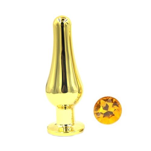 Анальная пробка золотая с желтым кристаллом SKN-MG06