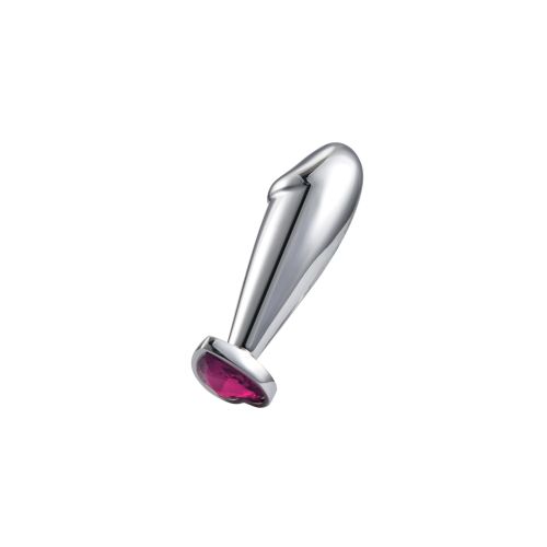 Анальная пробка металлическая с розовым камнем SKN-MS42