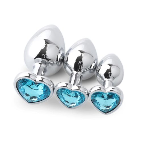 Комплект серебристых анальных пробок в форме сердца с голубым кристаллом SKN-NMS03 размер S, M, L
