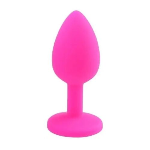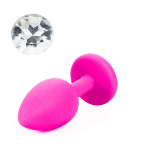 Силиконовая анальная пробка розовая с бесцветным кристаллом SKN размер S