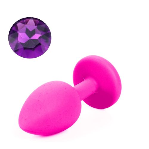 Силиконовая анальная пробка розовая с фиолетовым кристаллом SKN размер S