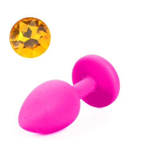 Силиконовая анальная пробка розовая с оранжевым кристаллом SKN размер S