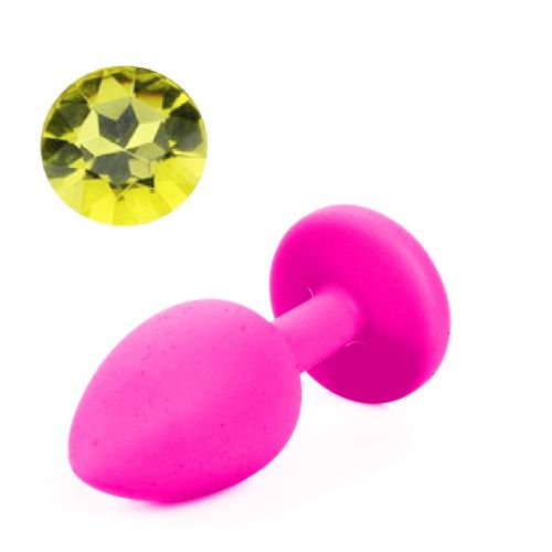 Силиконовая анальная пробка розовая с желтым кристаллом SKN размер S