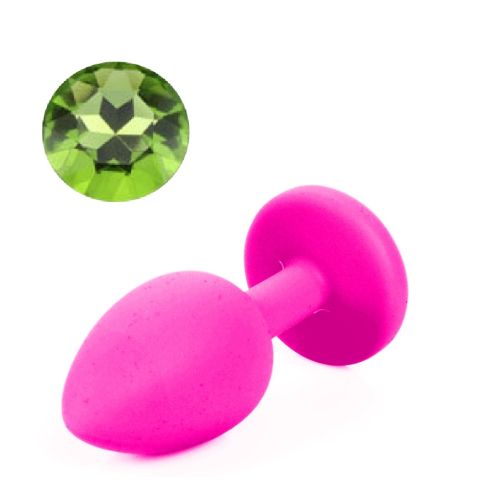 Силиконовая анальная пробка розовая с салатовым кристаллом SKN размер S