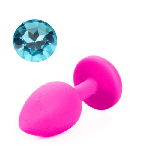 Силиконовая анальная пробка розовая с голубым кристаллом SKN размер S