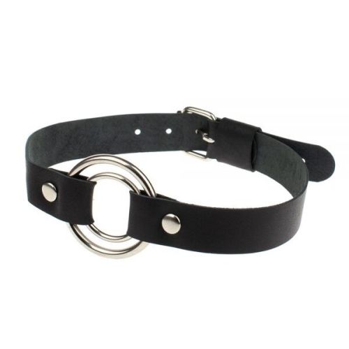 Ошейник чёрный для секса кожаный Double Target Smooth