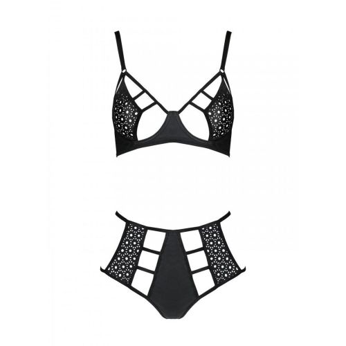 Комплект из эко-кожи: бюстгальтер и трусики с перфорацией Tamaris Set black S/M — Passion:
