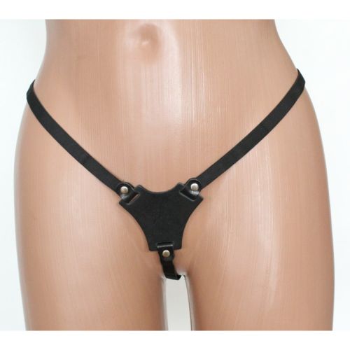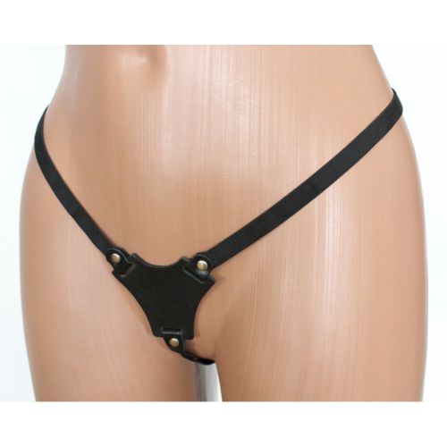 Стринги женские с вставкой треугольником из натуральной кожи черного цвета Scappa