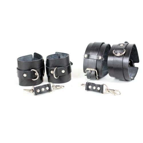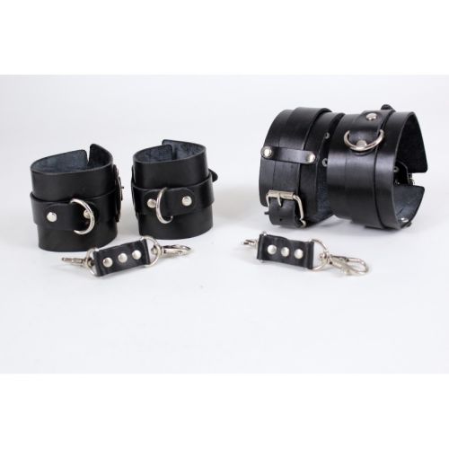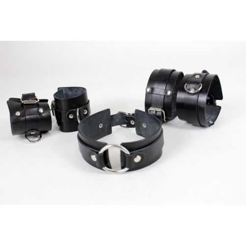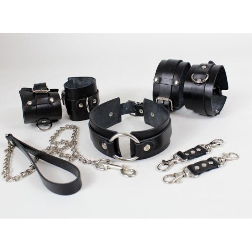 SET-42 Набор кожаные ошейник, наручники, наножники, поводок и коннектор