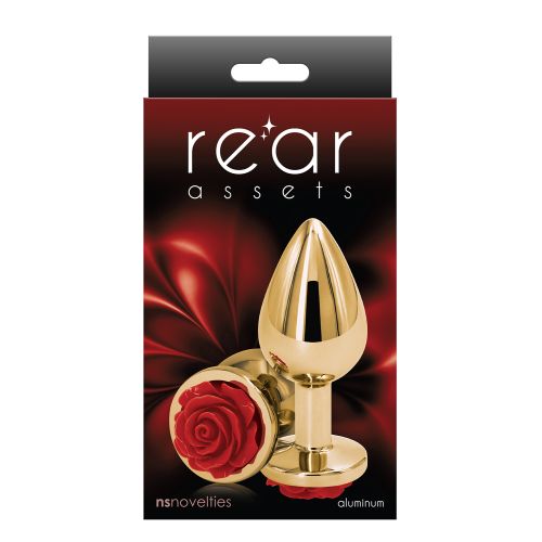 Анальная металлическая пробка золотистого цвета с красной розой в основании NS Novelties Rose medium