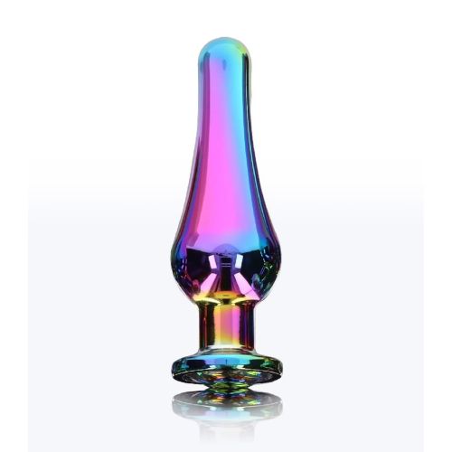 Анальная пробка металлическая с кристаллом радужного цвета Toy Joy размер Small