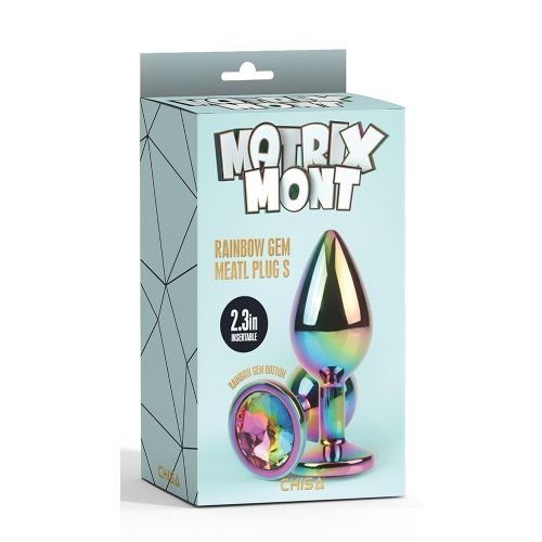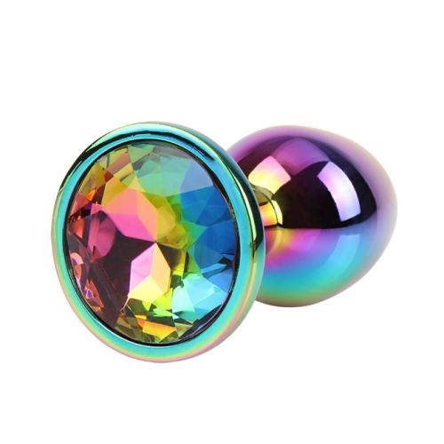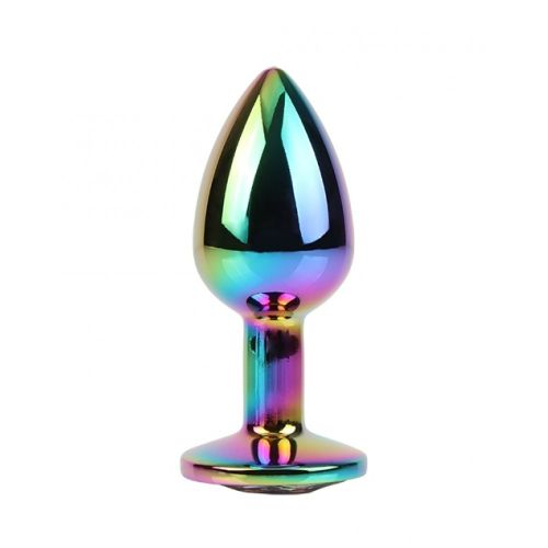 Металева анальна пробка з кристалом S різнокольорова Rainbow Gem Chisa
