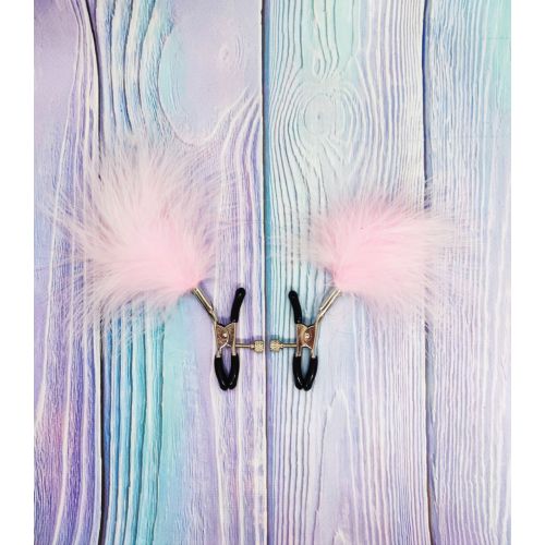 Затискачі на соски з пір'ям рожевого кольору DS Fetish Nipple clamps metal feather