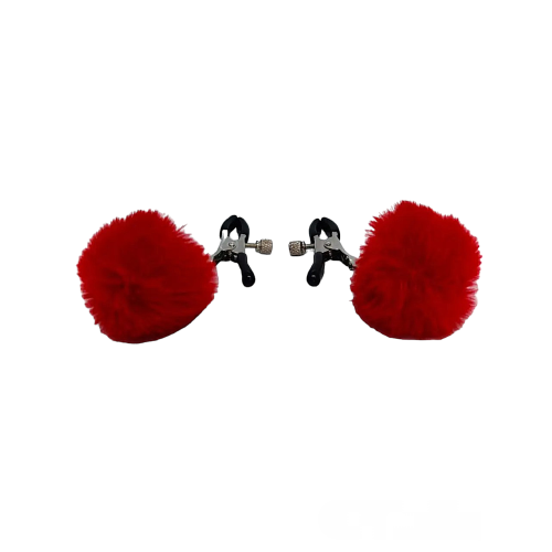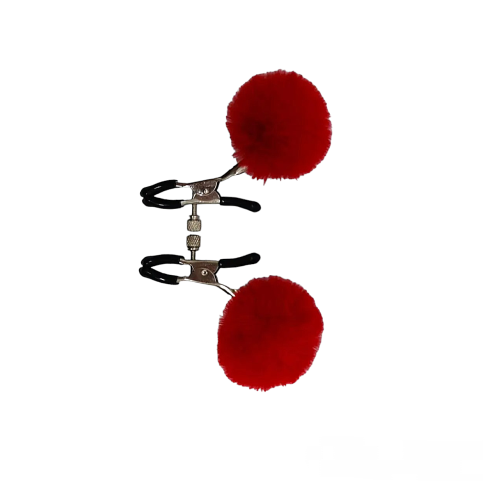 Затискачі на соски з помпонами червоного кольору DS Fetish Nipple clamps metal poliester