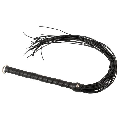 Стильний шкіряний флогер від ZADO у міцному виконанні. Безліч вузьких круглих шкіряних ремінців із загостреними кінцями не беруть до уваги їх інтенсивний ударний ефект. Високоякісний хлист повністю виготовлений зі шкіри, а його обернена рукоятка добре і збалансовано лежить у руці. На кінці рукоятки є зручне підвісне кільце.