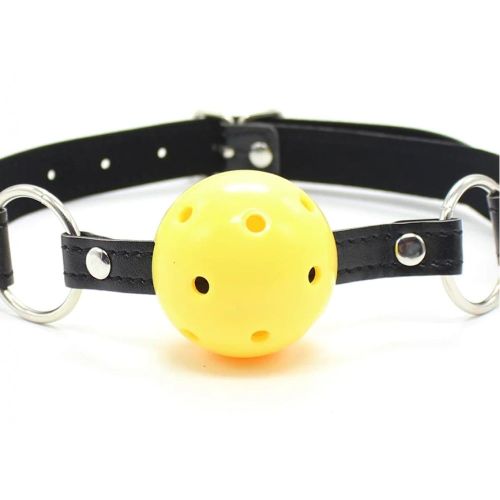 Кляп кулька в рот БДСМ штучна шкіра жовтий чорний з чорним ремінцем DS Fetish
