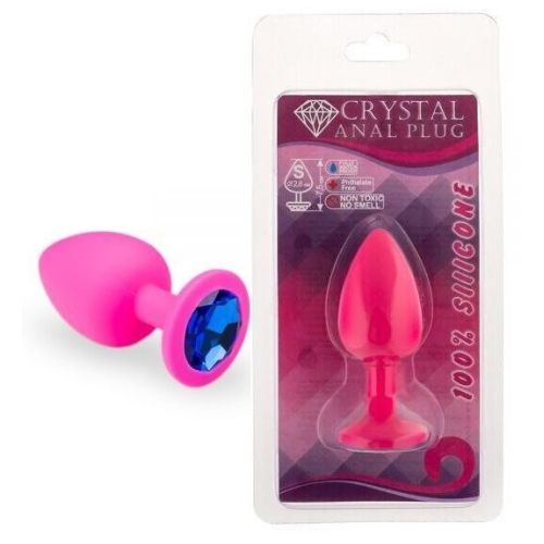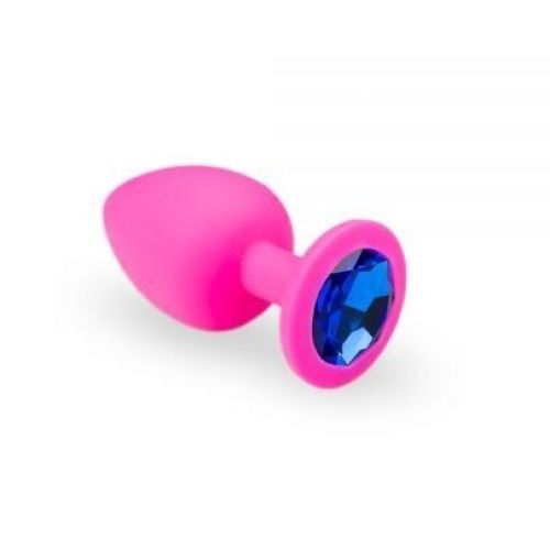 Силіконова анальна пробка з синім каменем Pink Silicone Sapphire розмір S