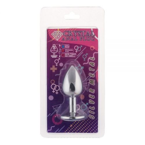 Металева анальна пробка з чорним кристалом розмір S Silver Black Diamond CRYSTAL