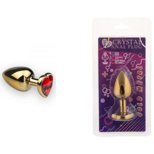 Анальна пробка золота з червоним каменем у формі серця розмір S