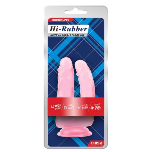 Подвійний анально-вагінальний фалоімітатор на присосці рожевого кольору CHISA Hi Rubber 6.3 Inch Dildo