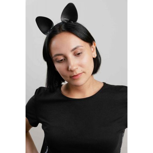 Аксесуар виконаний з міцного обідка та котячих вушок, виготовлених з натуральної шкіри.