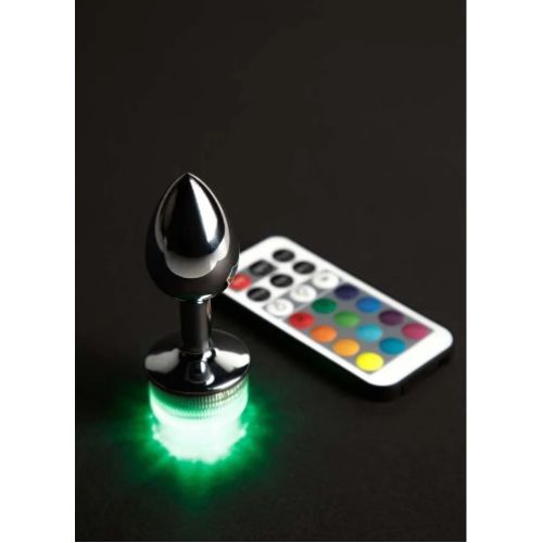 Анальна металева пробка з підсвіткою чорного кольору з пультом ДУ Loveshop розмір S