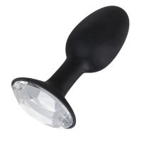 Анальна пробка з силікону чорного кольору з сріблястим каменем You2Toys розмір S