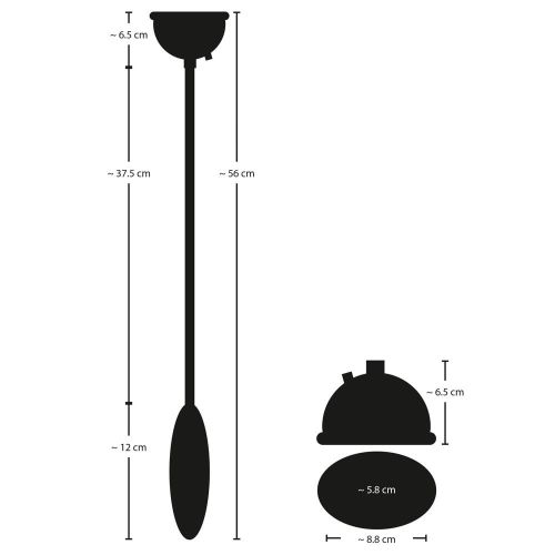 Загальна довжина помпи становить 56 см, чашка має довжину 6,5 см із внутрішніми розмірами 5,3 х 2,7 см.