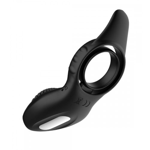 Ерекційне рельєфне віброкільце чорного кольору з пультом ДК Boss series