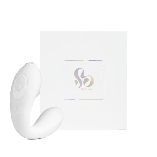 Вакуумний вібратор для вагінально-кліторальної стимуляції білий So Divine Pearl Vibe 2 в 1 — це втілення витонченого задоволення та інноваційного дизайну. Його гладкі лінії та чуттєві форми створені для того, щоб дарувати незабутні відчуття кожній жінці. Унікальність цієї іграшки полягає в її здатності поєднувати вакуумну стимуляцію з потужними вібраціями, що дозволяє досягти піку задоволення швидше та яскравіше. Pearl Vibe ідеально підійде тим, хто шукає нові грані насолоди та бажає додати трохи розкоші у свої інтимні моменти.