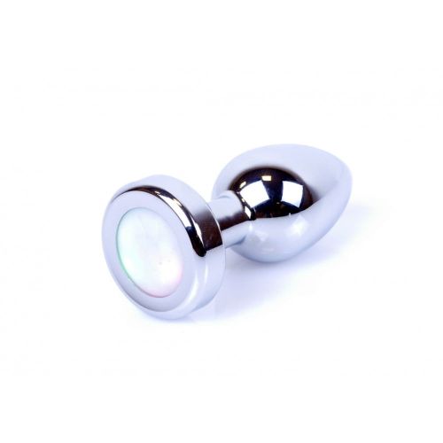 Анальний металевий затор сріблястого кольору зі світлодіодом Boss series розмір S
