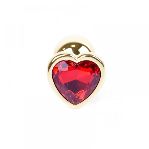 Анальна металева пробка золотистого кольору з червоним камінцем у формі серця серії Boss Plug Jewellery Gold Heart Plug Red розмір S