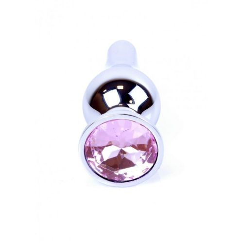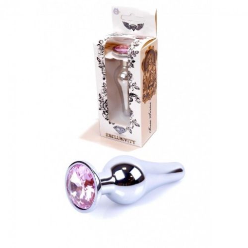 Анальна пробка сріблястого кольору з рожевим каменем серії Boss