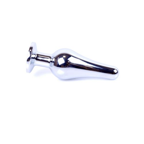Анальна металева пробка конусної форми сріблястого кольору з фіолетовим камінчиком Boss series розмір S
