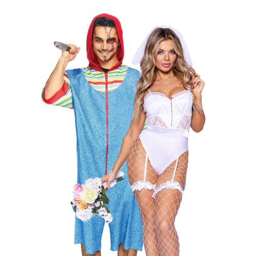Універсальний костюм нареченої, що складається з трьох предметів, ідеально підходить на Хелловін або для втілення культових персонажів. Він включає пустотливий боді з мереживними підв'язками, бант зі шлейфом і фату.