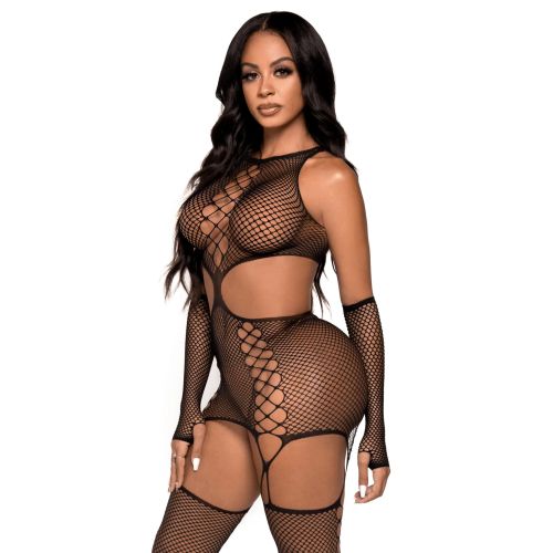 Бодістокінг із панчохами та відкритим доступом чорного кольору Leg Avenue Cami розмір Оne size
