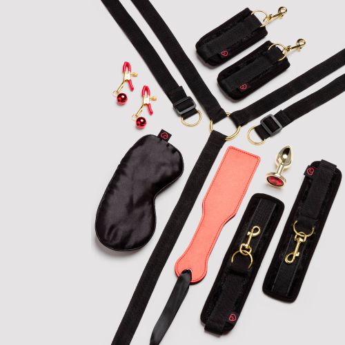 Дослідіть чуттєві ігри, бондаж і масаж: чи шукаєте ви способи оживити прелюдії або спробувати БДСМ, цей набір секс-іграшок включає пов'язку на очі, наручники, затискачі для сосків, масажне масло та багато іншого, щоб ви могли розпочати свою сесію БДСМ ігор.