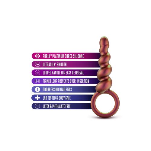 Плаг Duo Loop має 2 округлі кульки, які поступово збільшуються у розмірі для оптимальних відчуттів та масажу під час використання. Він також має силіконову петлю біля основи для легкого введення та вилучення.