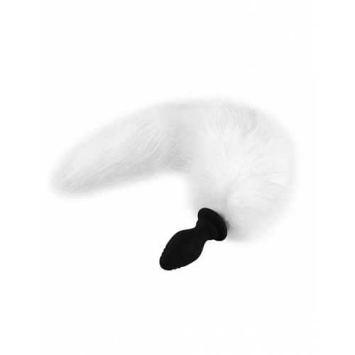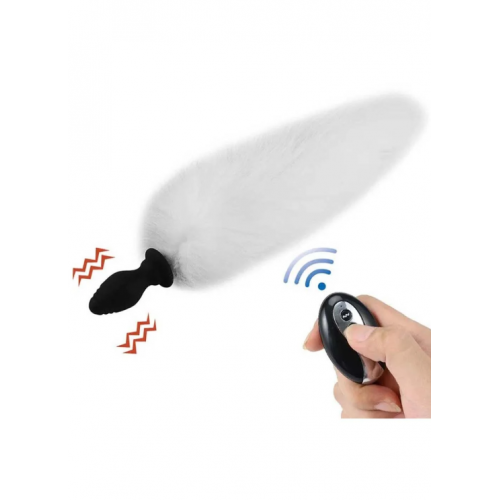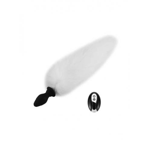 Анальна пробка з вібрацією з хвостом білого кольору та пультом управління Crystal