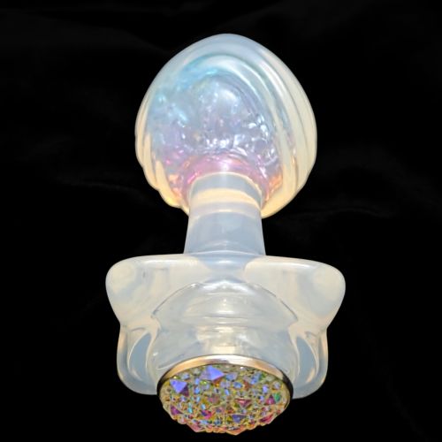 На підставі розташований декоративний камінь, який сяє при світлі та перетворює аксесуар на справжню прикрасу. Форма ретельно продумана: плавний кінчик полегшує введення, рельєфне тіло приємно масажує, а широка основа з каменем забезпечує повну безпеку та зручність у процесі.