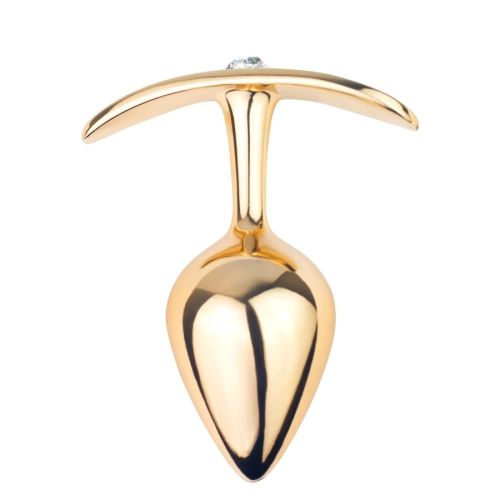 Анальна пробка Roomfun з камінчиком, золотиста, M