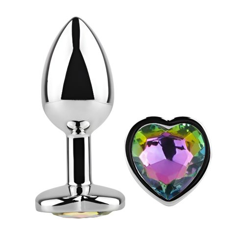 Анальна пробка срібляста із нержавіючої сталі з кристалом у формі серця райдужним EGZO Heart Plug розмір S