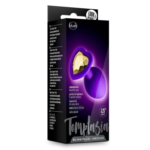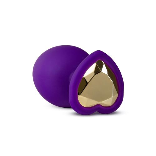 Анальна пробка силіконова фіолетова із золотим стразом у формі серця Blush Temptasia розмір M