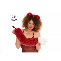 Анальний хутряний пухнастий хвіст без пробки Темно-червоний з білим кінчиком OKOVA 600 мм