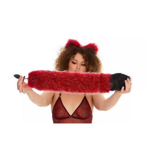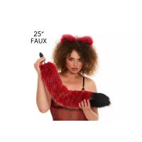 Анальний хутряний пухнастий хвіст без пробки Темно-червоний з чорним кінчиком OKOVA 600 мм