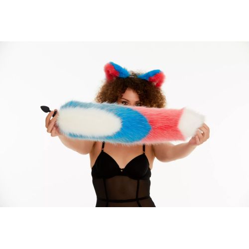 Залишіть свій відгук на Анальний хутряний хвіст без пробки Триколірний Білий Яскраво-блакитний яскраво-рожевий з білим кінчиком OKOVA 600 мм напишіть відгук