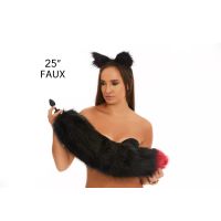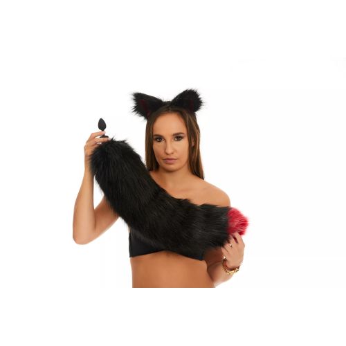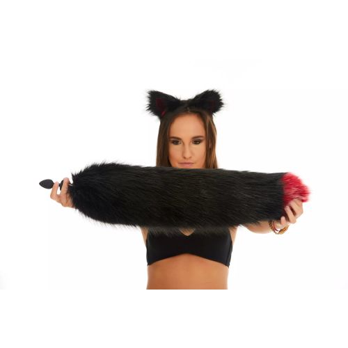 Анальний хутряний пухнастий хвіст без пробки Чорний з темно-червоним кінчиком OKOVA 600 мм